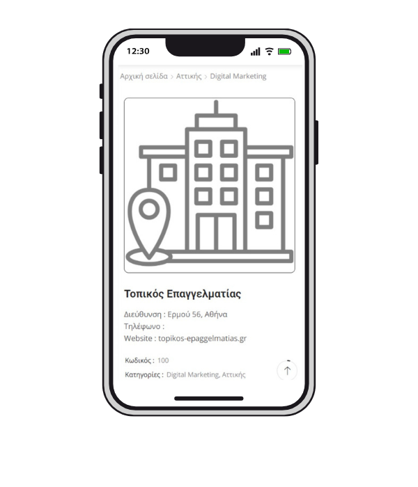 Η καταχώρησή σας εμφανίζεται σε χρήστες που αναζητούν συγκεκριμένες υπηρεσίες στην περιοχή τους, αυξάνοντας τις πιθανότητες επικοινωνίας και νέων συνεργασιών.